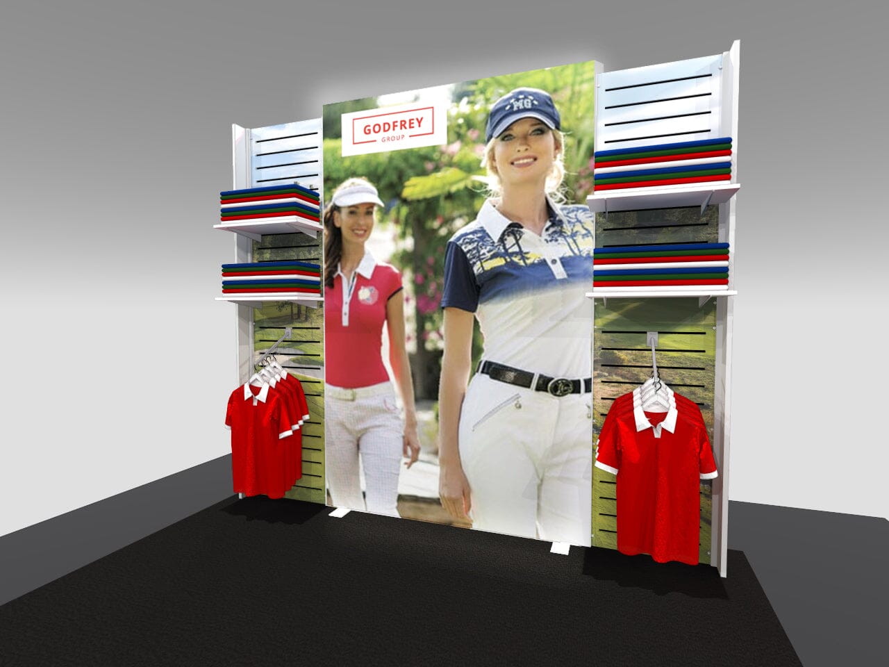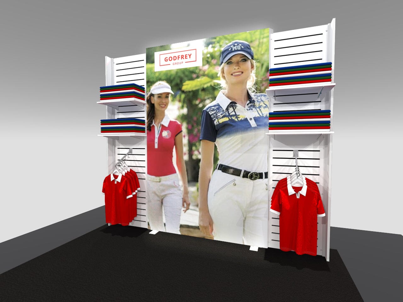 10' Display with Center Light Box (optional monitor mount) and Slat Panels for Product Display